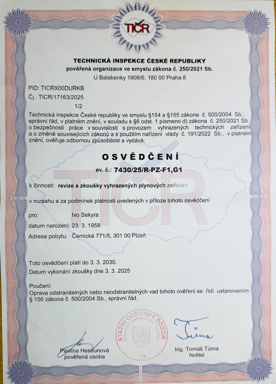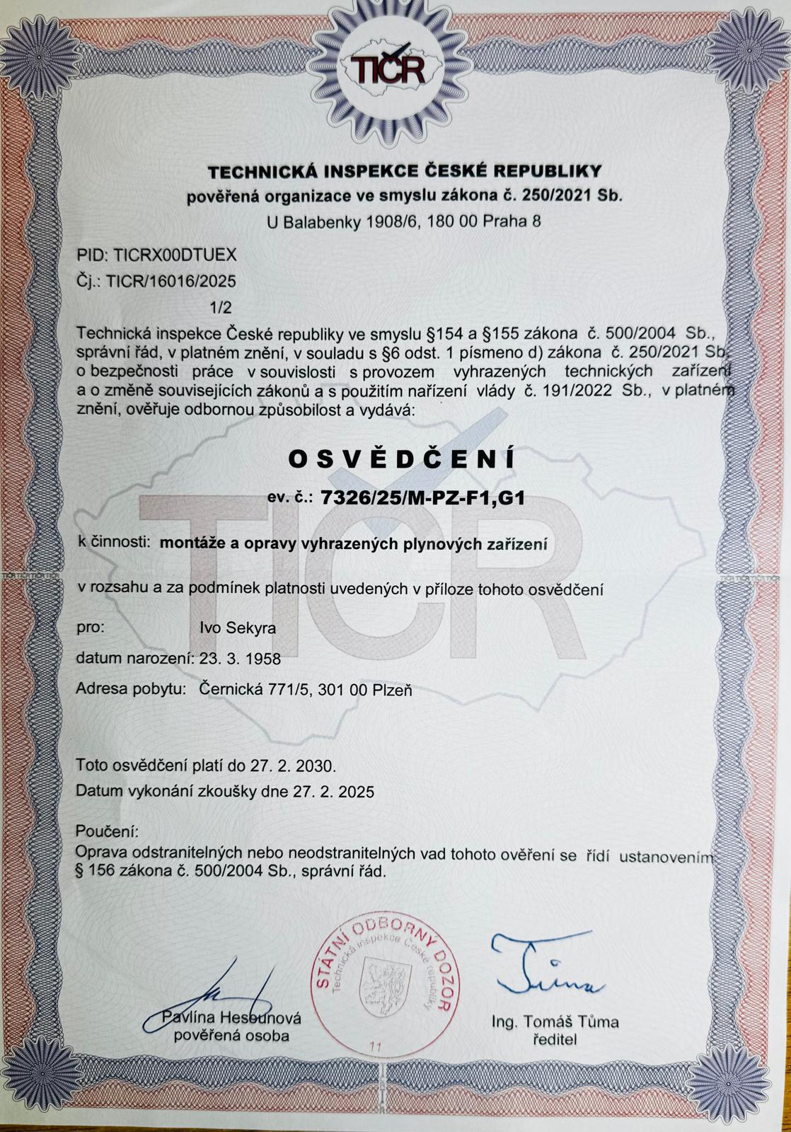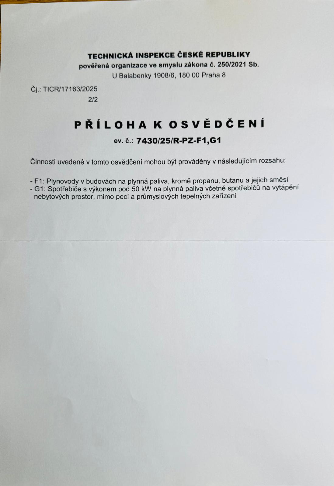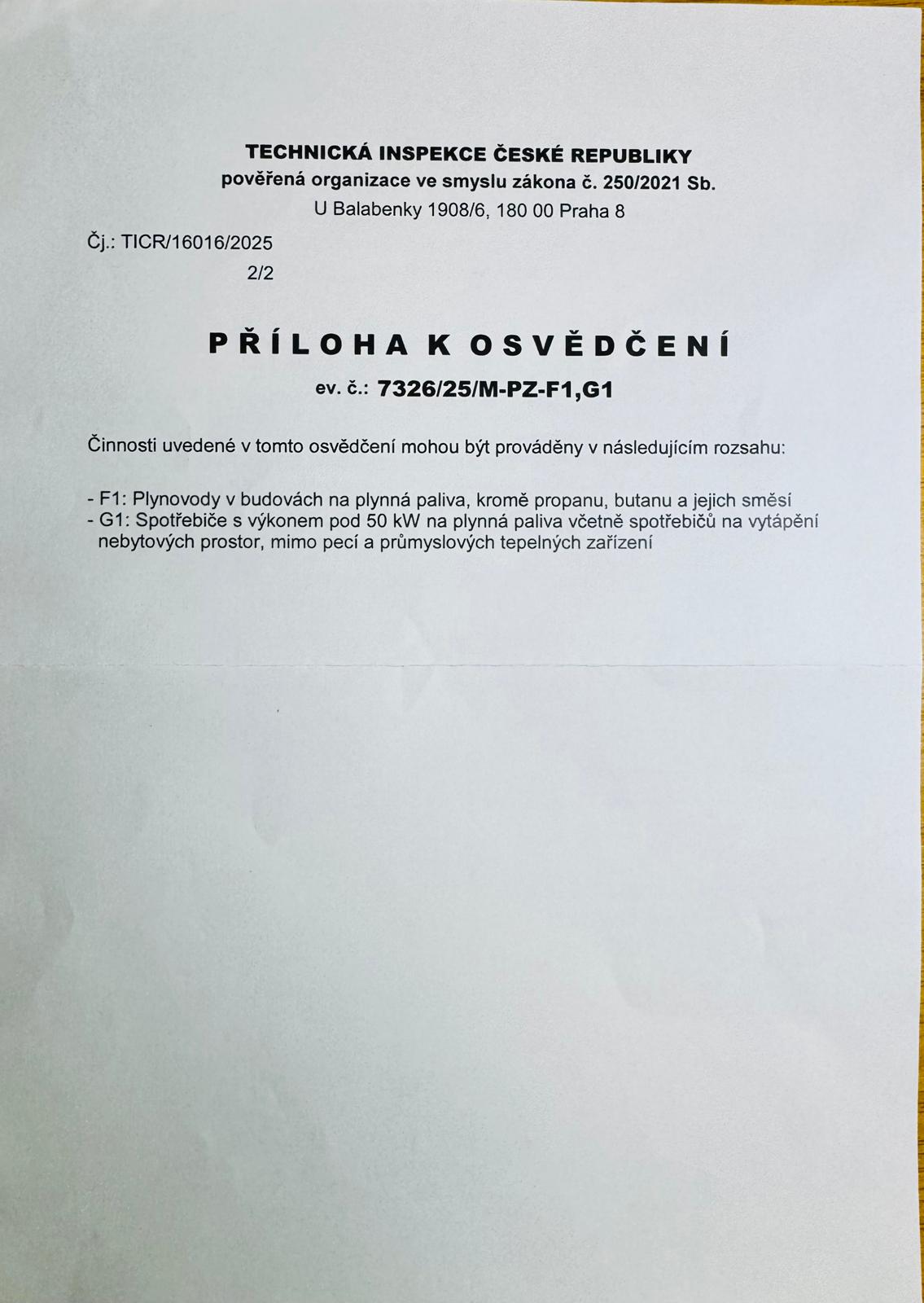 Osvědčení TIČR- montáže 1 Osvědčení TIČR- montáže 2 Živnostenský list plyn
